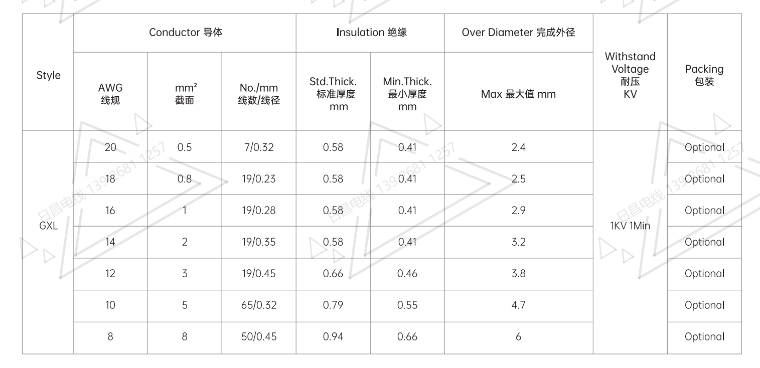 • 通用交聯聚乙烯絕緣汽車電線美標